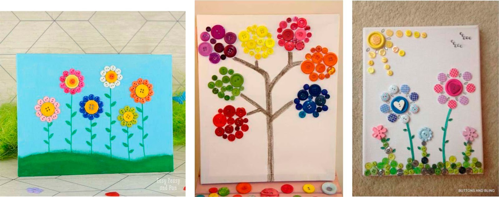 Manualidades con botonesEs muy fácil, si no tenéis botones podéis sustituirlos por bolas de papel de colores, flores hechas con goma-eva (si tenéis en casa), flores de papel, fichas del parchís…Algo que represente a las flores.
